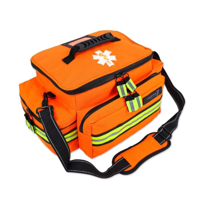Esta bolsa de primeros auxilios también incluye ribetes reflectantes de primera calidad y alta visibilidad en todas partes, así como tiradores de cremallera de nailon balístico con correas reflectantes de triple ribete amarillo/plateado cosidas en ambos lados, lo que garantiza que su bolsa sea visible en el lugar de una emergencia.